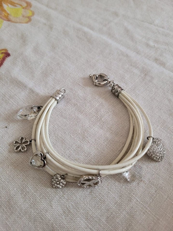 Tchibo Charmli Beyaz Deri Bileklik, bilekligin düz uzunluğu 18 cm. #tchibo #bileklik #kristal