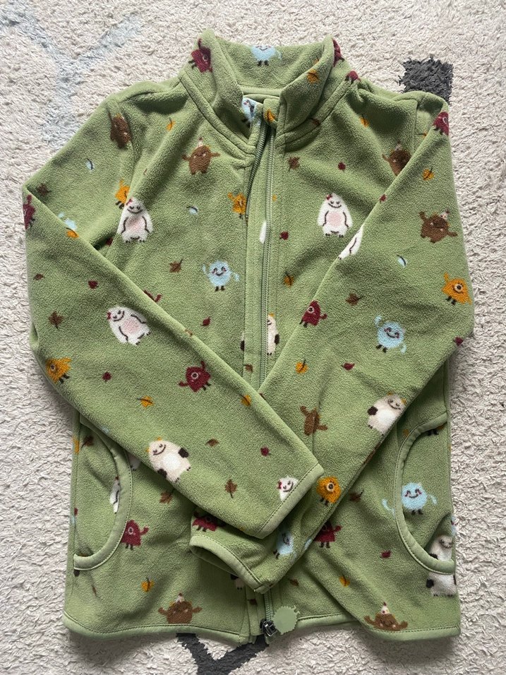 Yeşil renkli, yumuşak dokulu kız çocuk hırka, fermuarlı, uzun kollu ve bol kesimdir. Pastel tonlarda, baskılı deseniyle sokak stili için uygundur.
