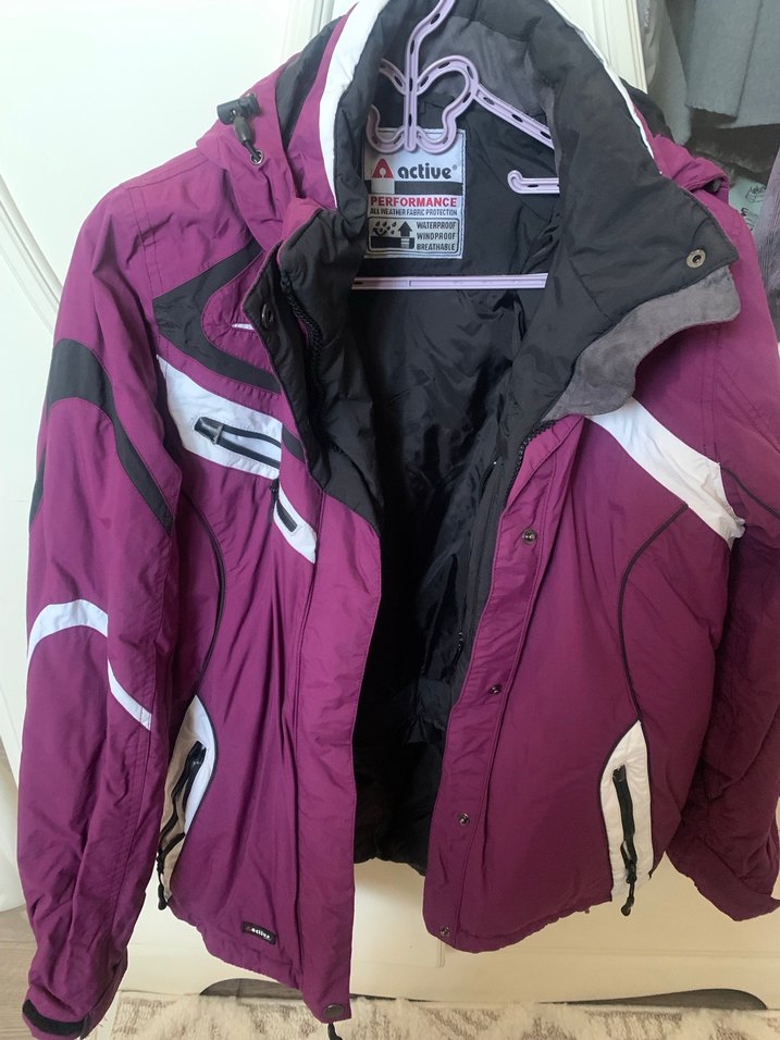 Tchibo kayak montu 38 beden yepyenidir 50 52 cm en boy 70 cm Mor renkli, fermuarlı ve uzun kollu kadın kışlık ceket. Yumuşak fleece kumaştan, normal midi boyda ve kesimi vücuda oturan modeldir.