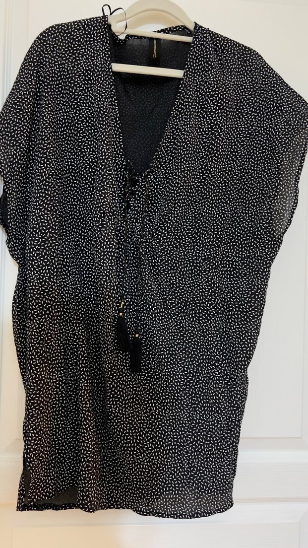 Yakmayan, terletmeyen hafif kumaştan.. Püskülleri var. Boyundaki açıklık ayarlanabilir. Hiç giyilmedi. Xs/s beden ama m l bedene de olabilir kesiminden dolayi. Uzunluğu 80 cm, genişliği 65 cm
