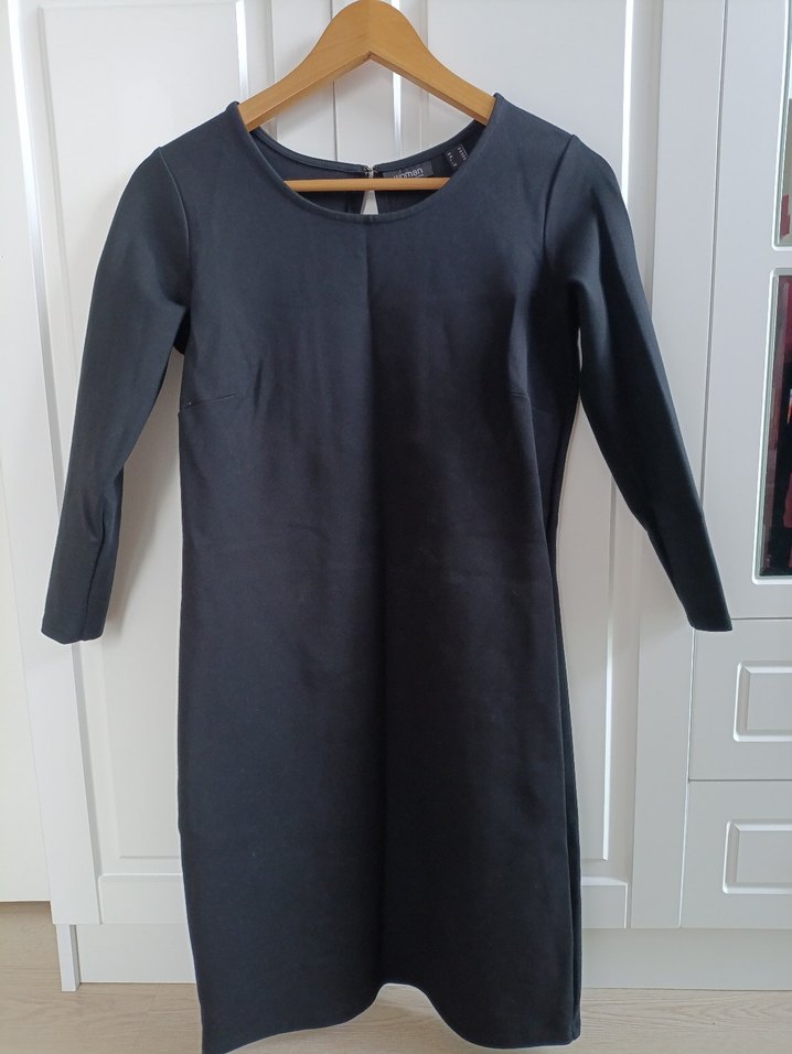 Orjinal Tchibo markalı siyah fit elbise. Uzun kollu, düz renktedir. Günlük ve ofis ortamına uygundur. Hiç kullanılmamıştır. Herhangi bir sorunu yoktur. S-36 bedendir. Elbisenin uzunluğu 91 cm, beli 40 cm'dir.