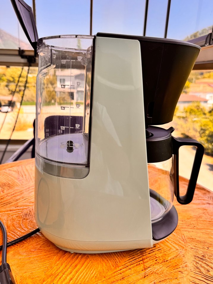 Şeffaf su haznesi ve siyah saplı cam sürahisi olan ve gövdeli kompakt kahve makinesi. ☕çok az kullanıldı ihtiyaç fazlası