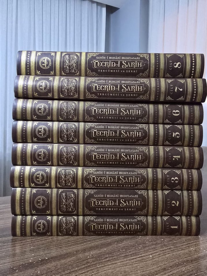 8 ciltlik Tecrid-i Sarih (Buhari Muhtasarı Şerhli) seti, tercüme ve şerhli olarak sunulmuştur. BÜYÜK BOY.