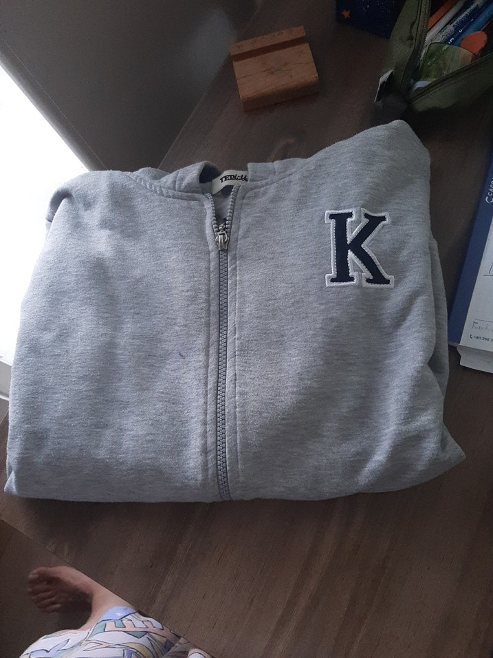 8-9- 10 yaş Kapüşonlu ve fermuarlı gri erkek çocuk sweatshirt, uzun kollu ve vücuda oturan kesime sahiptir. Önünde baskılı 'K' harfi bulunur. Yumuşak ve sıcak kumaştan üretilmiştir.
