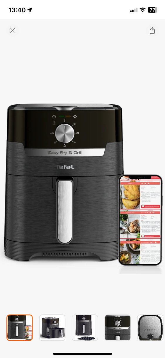 Tefal Easy Fry & Grill, siyah renkte olup kolay sıcaklık ayarı için kontrol düğmesi içerir. Kızartma ve ızgara fonksiyonları sunar ve tarif uygulamasıyla bağlantı kurar. Sağlıklı bir hava ile kızartma ve hepsi bir arada ızgara için 2'si 1 arada çözümü keşfedin! Bir hava fritözünden daha fazlası olan özel ikili teknoloji, yumuşak, sulu etler ve mükemmel şekilde kızartılmış sebzeler için bir döküm alüminyum ızgara da sunar. Hava ile kızartma işlevi sayesinde en sevdiğiniz atıştırmalıkları çok az yağ ile veya hiç yağ eklemeden mükemmel çıtırlıkta pişirebilirsiniz! Hızlı sonuçlar ve daha az enerji tüketimi için klasik fırına ideal bir alternatif! Ayarlanabilir sıcaklık kontrolü ve kullanışlı bir zamanlayıcı sayesinde çok çeşitli lezzetlere sahip malzemelerle mükemmel sonuçlar elde edebilirsiniz. XL kapasitesiyle Easy Fry & Grill tüm aileye yeter! Neyi bekliyorsunuz?
