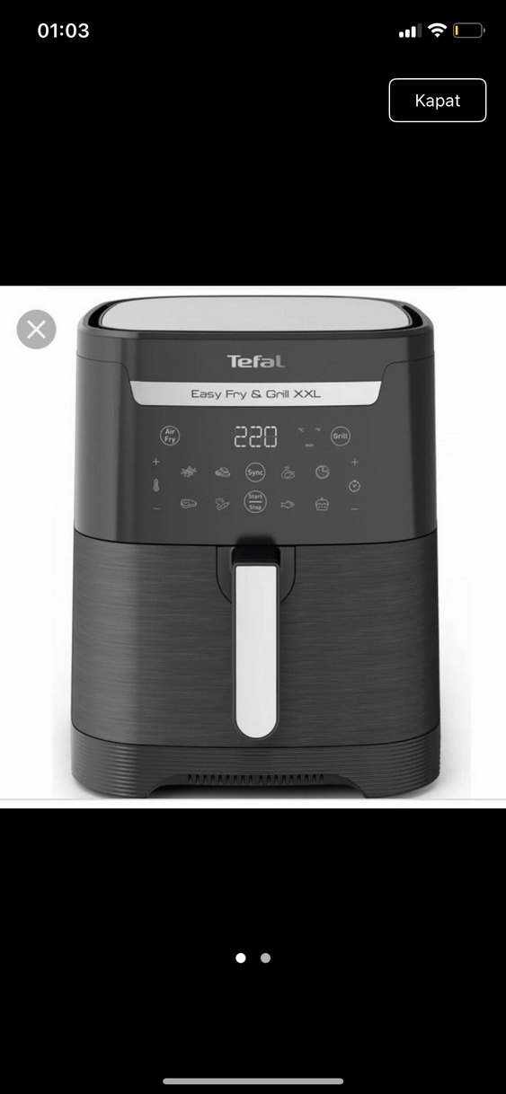 Tefal Easy Fry & Grill XXL siyah fritöz, büyük kapasite ve dijital kontrol paneli ile çeşitli pişirme modları sunar.