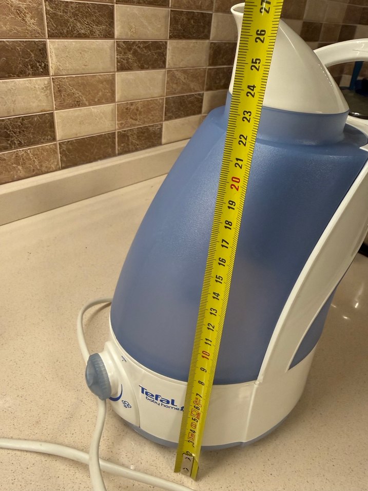 Kırığı çatlağı yok. Sorunsuz çalışıyor. İADE YOKTUR . Tefal buhar makinesi, mavi su tankı ve beyaz tabanlıdır. Önde kontrol düğmesi bulunur, yüksekliği yaklaşık 27 cm'dir.