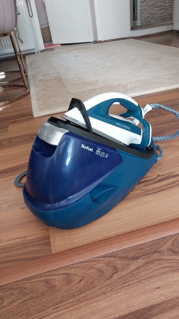 Tefal marka, beyaz saplı koyu mavi renkli buharlı ütü, ergonomik tutma yeri ve sağlam yapıya sahiptir. temiz ve sorunsuz...