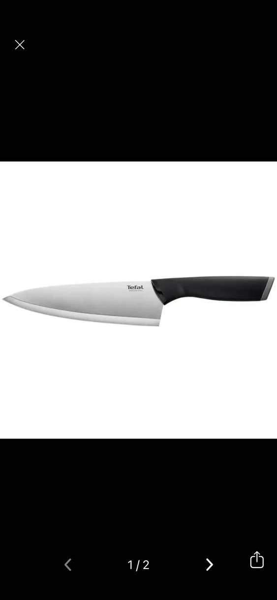 Tefal mutfak bıçağı, keskin paslanmaz çelik bıçağı ve kullanımı rahat siyah ergonomik sapı ile dikkat çeker. 20 cm