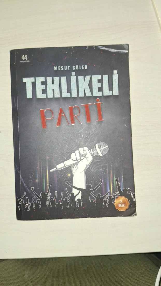 Mesut Güler'in Tehlikeli Parti adlı şiir kitabı, güçlü ifadelerle dolu ve mikrofon görseliyle dikkat çekiyor.