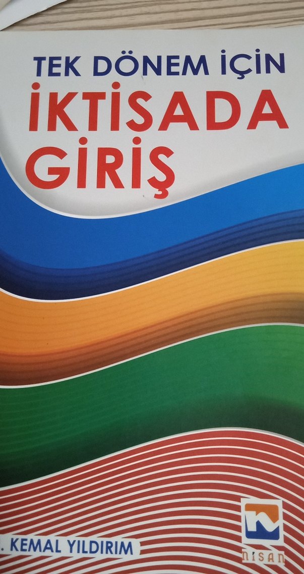 Tek dönem için hazırlanmış, renkli dalga desenlerine sahip iktisada giriş kitabı. üzerinde çizimler vardır.