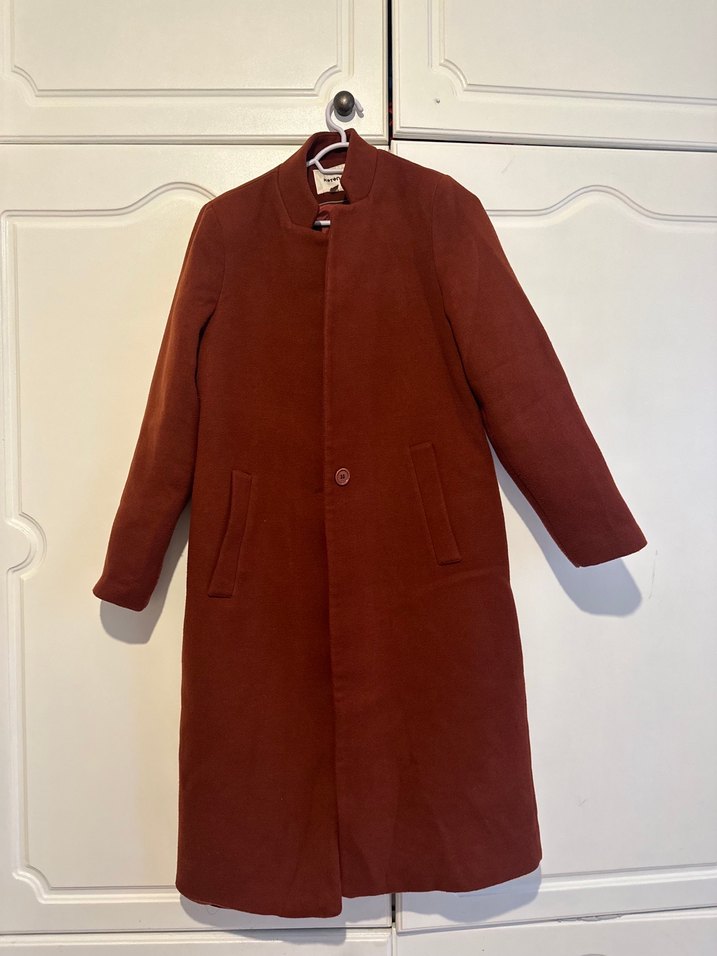 Tek Düğmeli Kiremit Rengi Kaban