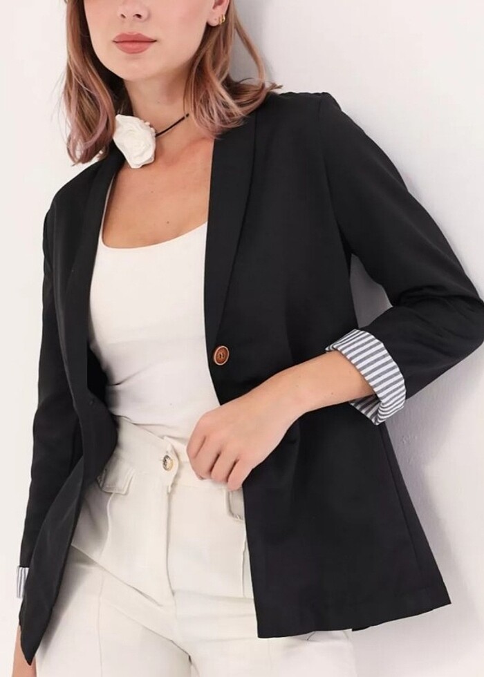 TEK DÜĞMELİ KOL İÇİ ÇİZGİLİ CEKET
