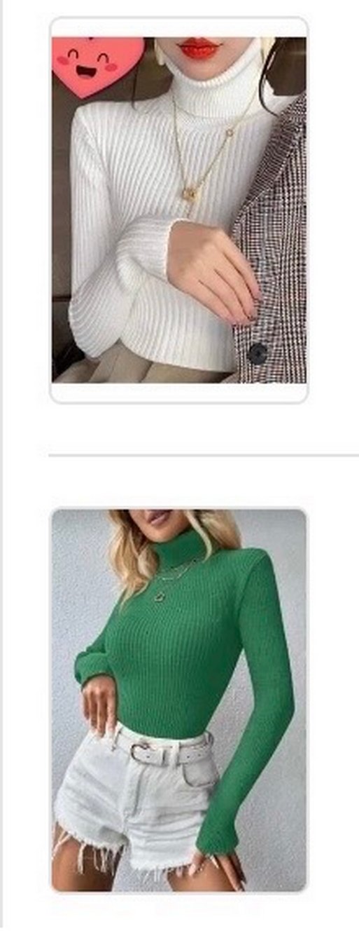 boğazlı, uzun kollu, beyaz yeşil triko kazak. Günlük sokak tarzı için uygundur.