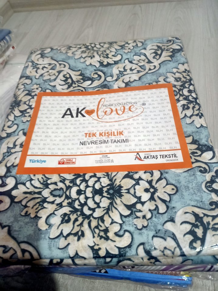 Aktaş Tekstil'den tek kişilik mavi renkli, desenli nevresim takımı. Türkiye'de üretilmiştir. ️