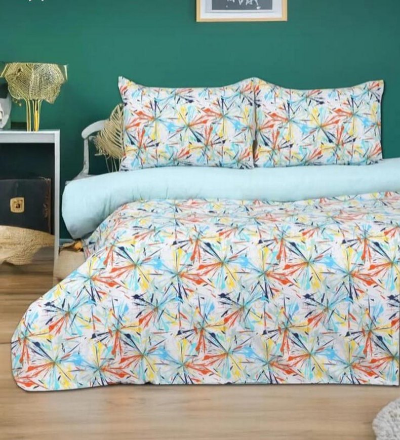 Pastel çok renkli batik desenli nevresim takımı, yatak odanıza yumuşak ve canlı bir hava katar.