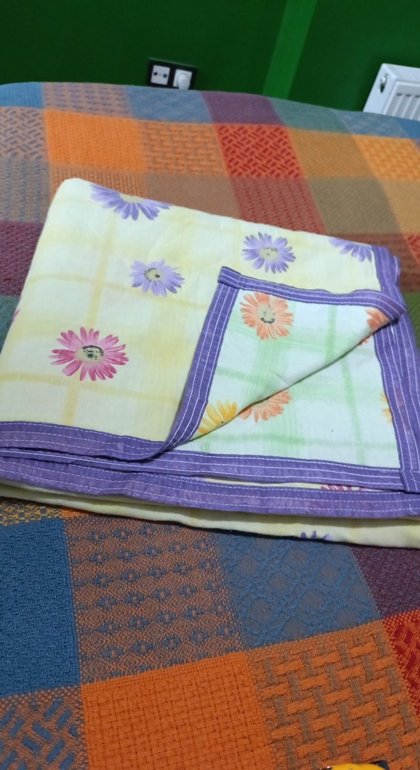 nevresim kumaşından iki yüzlü mor çerçeveli 180'e 200 pike kullanılmış yırtığı söküğü bir deformesi yok çok da uygun fiyata veriyorum kapın derim hanımlar