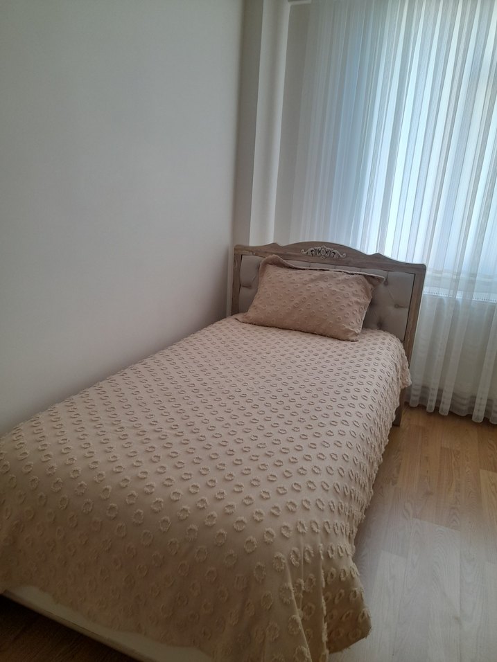 Bej renkli, nakışlı desenlere sahip yumuşak dokulu yatak örtüsü ️Tek kişiliktir hiçbir sorunu yoktur neredeyse hiç kullanılmamıştır