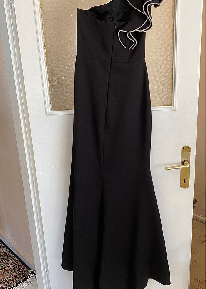 Boy 150 bel en 30 cm arkasi uzun volanlidir.Uzerimde 1 saat durdu.Yanı yırtmaclidir.
