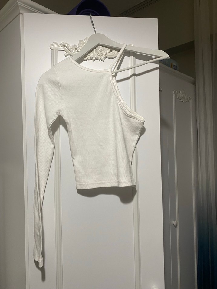 Bu beyaz crop top, tek kollu ve diğer tarafı kolsuz olarak tasarlanmıştır. Yüksek yakalı, ince kesim ve yumuşak keten kumaştan yapılmıştır. Günlük kullanıma uygundur. ✨
