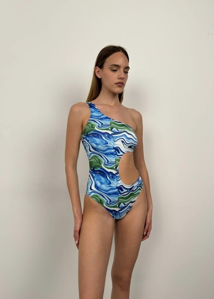 S-M-L BEDENLER MEVCUTTUR Tek Omuz Desenli Mayokini Manken Ölçüleri : Göğüs : 83 cm Bel : 64 cm Basen : 95 cm Manken Boy : 176 cm Kilo : 57 kg Manken üzerindeki S bedendir. Ürün İçeriği : 82 Polyamid 18 Likra