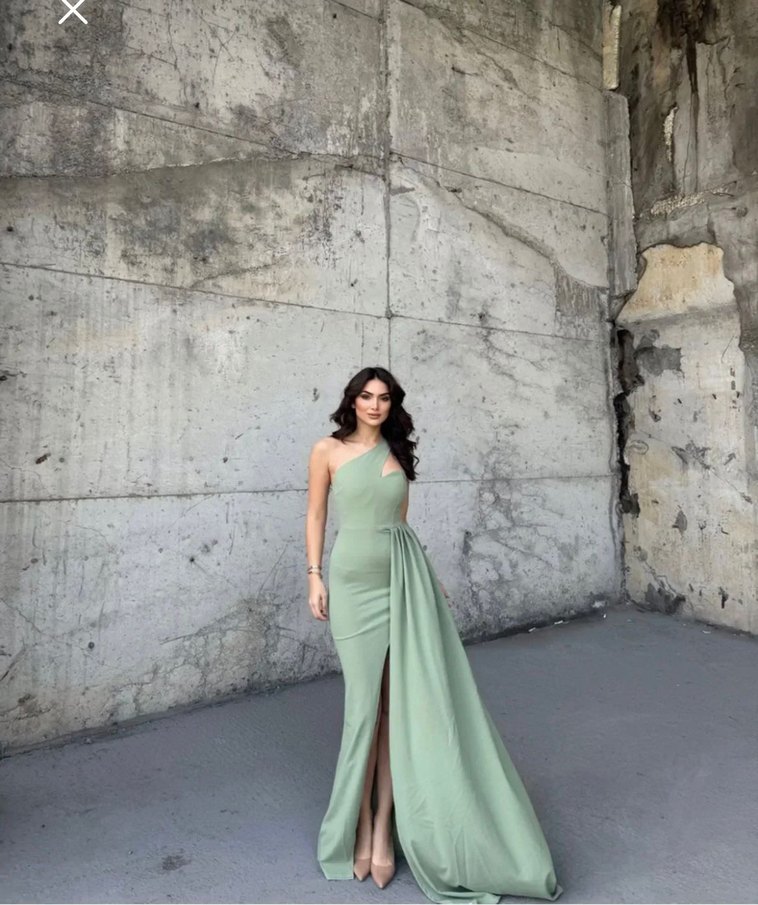 Tek Omuz Drapeli Uzun Haki Abiye Elbise
