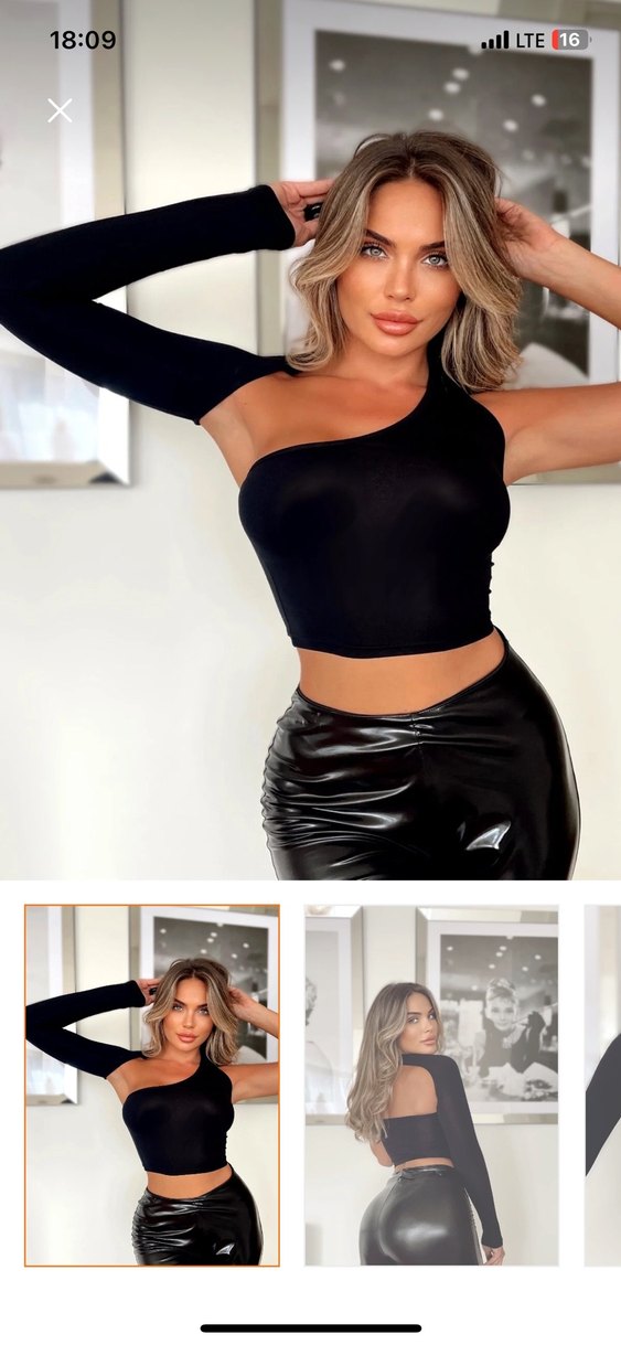 Tek omuzlu, uzun kollu siyah bluz, cesur ve göz alıcı goth tarzıyla romantik akşamlar için şık bir seçimdir.