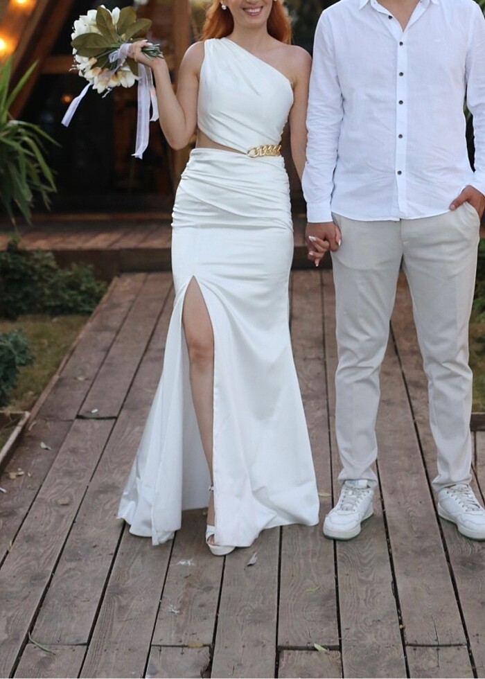 Nikahım için almıştım dış çekimde de kullandım zaten çok rahat ve bel detayıyla çok şık bir elbise. Kuru temizlemesi yapıldı