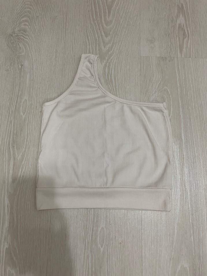 Tek Omuzlu Beyaz Crop Top
