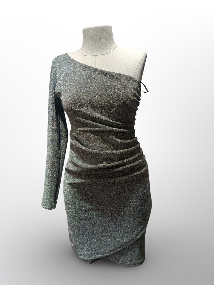 Tek Omuzlu Gri Drapeli Kadın Elbise