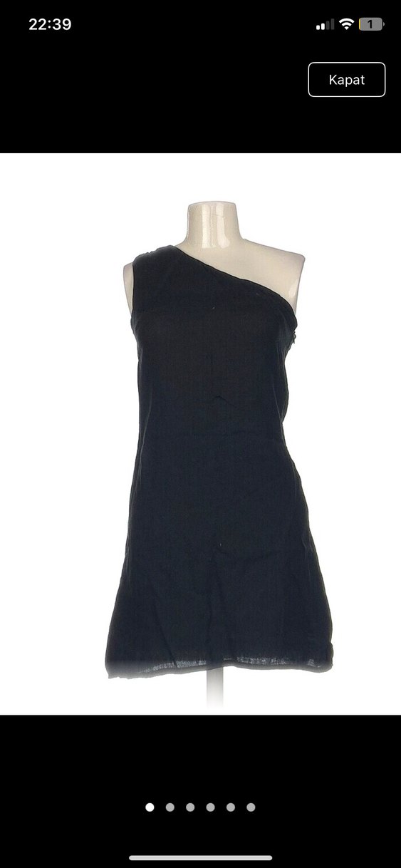 Tek omuzlu, askısız siyah keten midi elbise, rahat kesimi ve çağdaş tarzıyla günlük kullanıma uygundur.