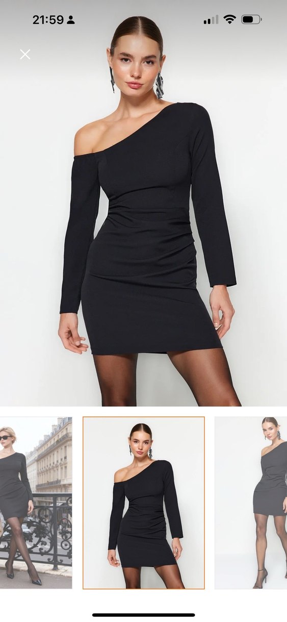 Tek Omuzlu Siyah Mini Elbise