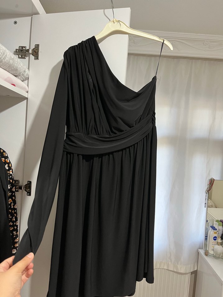 Tek Omuzlu Siyah Uzun Abiye Elbise