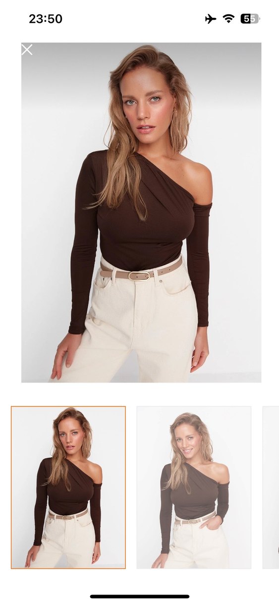 Tek Omuzlu, Uzun Kollu Kahverengi Bluz