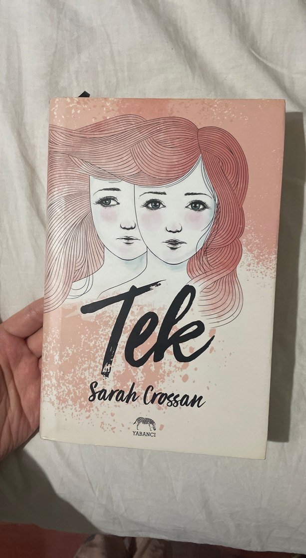 Sarah Crossan'ın "Tek" adlı romanı, iki iç içe geçmiş yüzün yer aldığı yumuşak pembe tonlarda kapak tasarımıyla dikkat çekiyor. Şiirsel anlatımıyla derin temalar işleniyor.