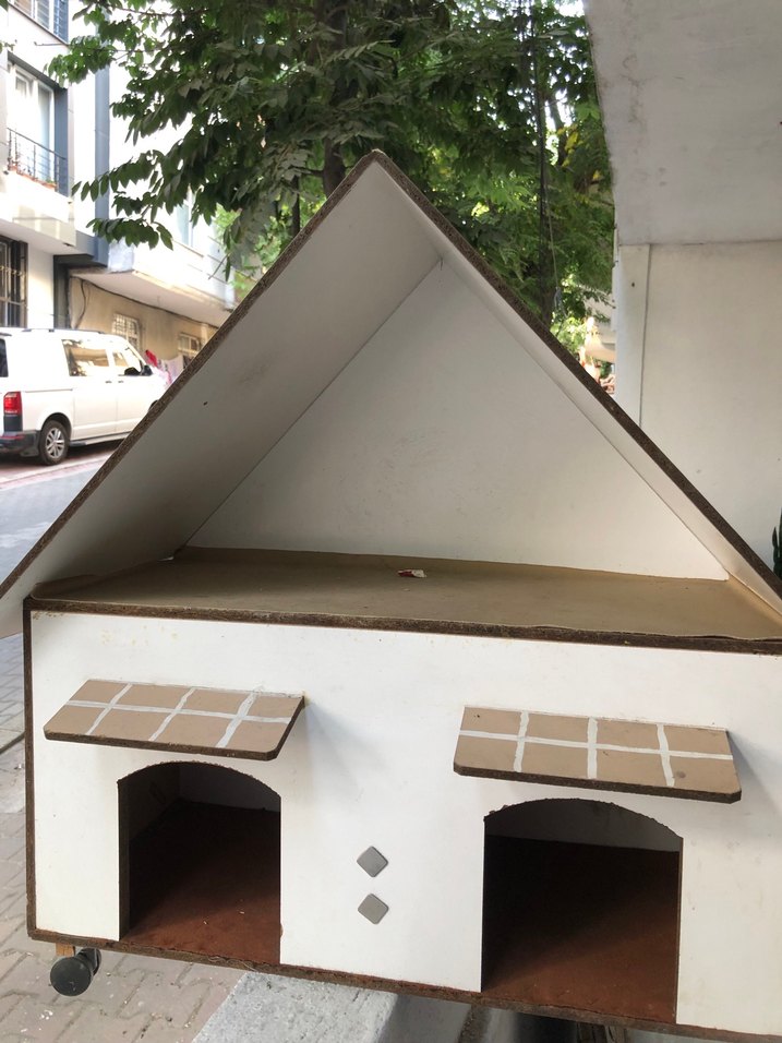 Tekerlekli ahşap kedi evi