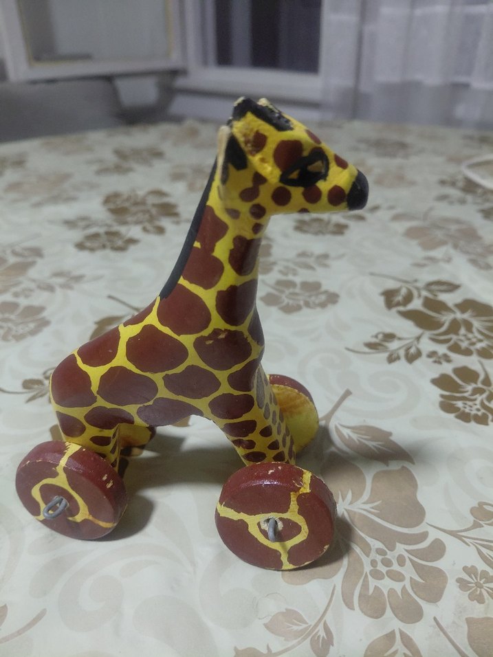 Tekerlekli, renkli desenli ahşap zürafa oyuncak, kolay hareket için tekerleklerle donatılmıştır. Dayanıklı ve eğlenceli bir oyuncaktır.
