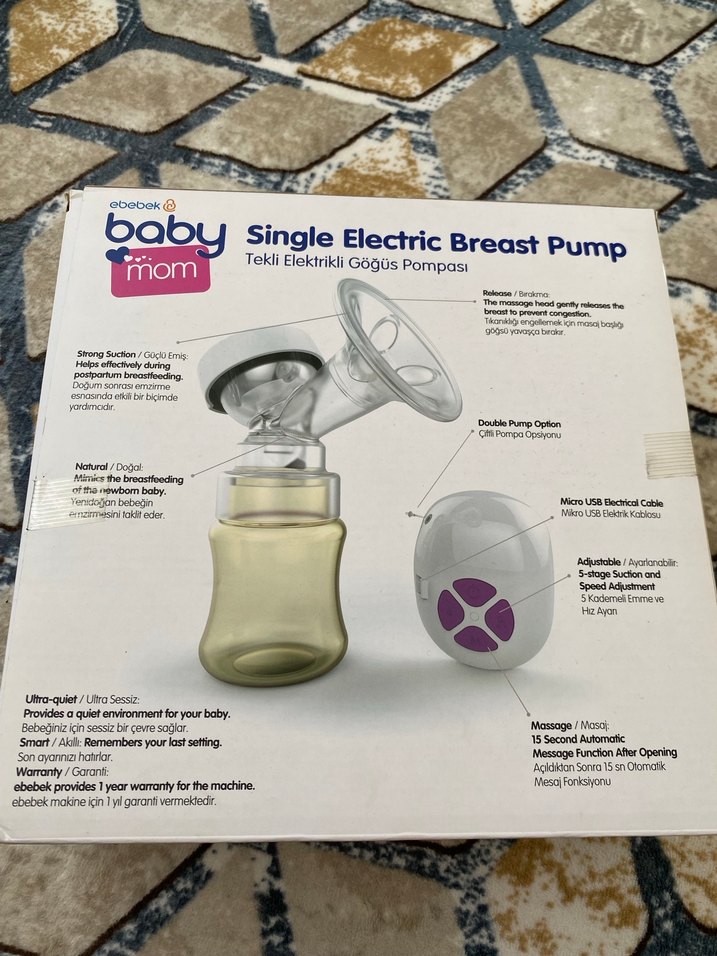 Tekli elektrikli göğüs pompası. Ayarlanabilir hız ve masaj fonksiyonları vardır nadir kullandım temiz kutulu