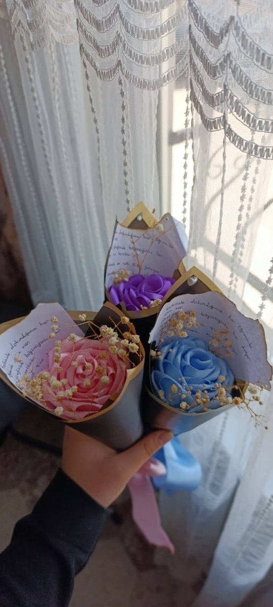 İstenilen renkte tekli gül buketi yapılır.