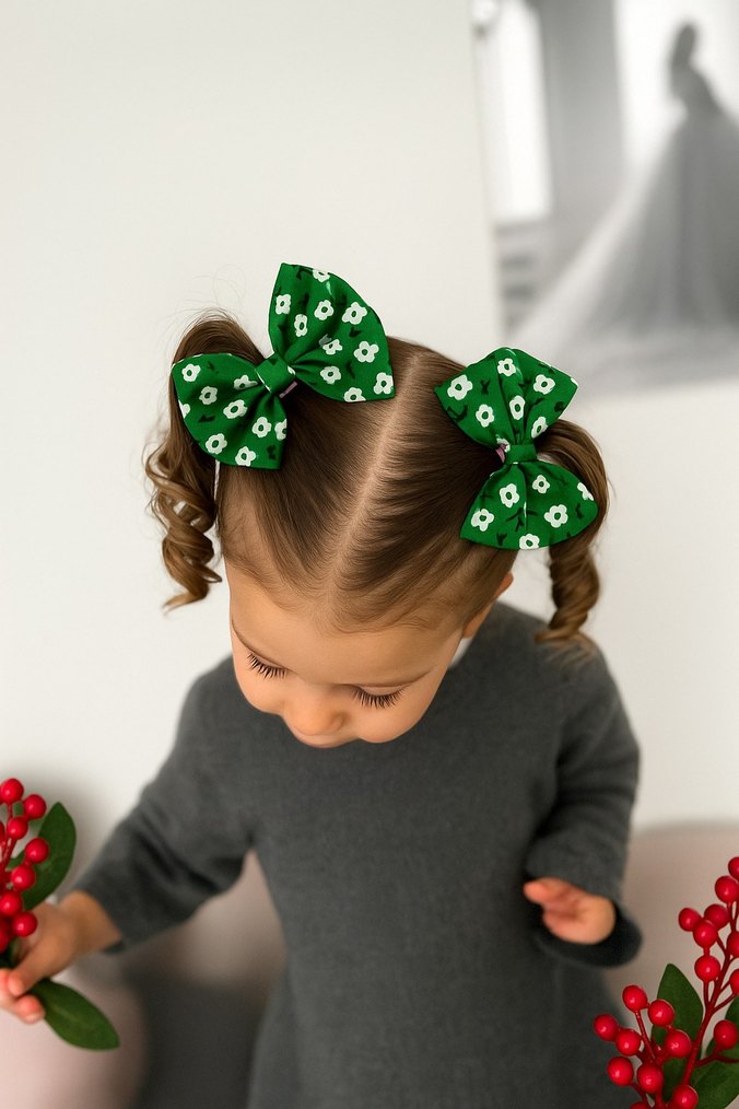 2li yeşil Çiçekli Fiyonk Saç Tokası Seti