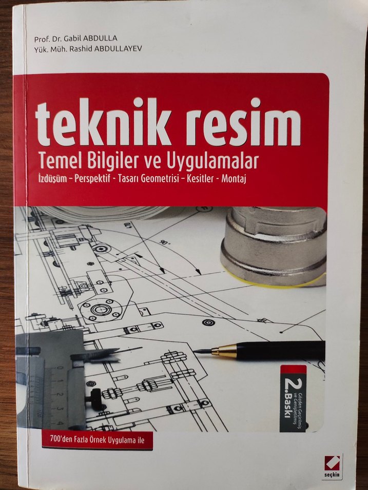 Temel bilgiler, perspektif, tasarım geometrisi, kesitler ve montaj konularını içeren teknik resim kitabı. 700'den fazla örnek uygulama bulunur. Basım 2012.