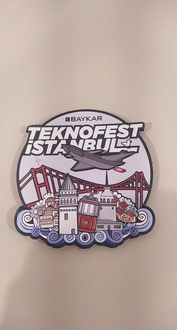 Baykar ve Teknofest İstanbul yazılı, uçak ve İstanbul simgeleriyle tasarlanmış gri patch. Sokak stiline uygun bir aksesuar. ✈️