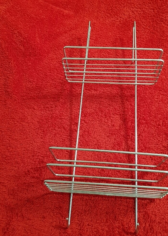 TEKNOTEL ASKILI DUŞAKABIN RAFI 2 KATLI Altta da askıları mevcut Beyaz metal-PASLANMAZ Çok az kullanıldı ufacık çizik bile yok