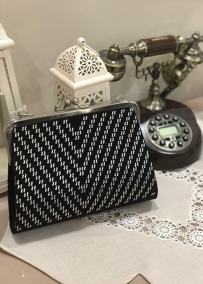 Tamamen el işçiliği ile yapılmış hatasız tel kırma çanta. Sıfır hiç kullanılmadı. Zinciri dahildir. İster abiye ister günlük kullanabilirsiniz. Yüksekliği 17 cm, alt tarafının genişliği 22 cm, üst tarafının genişliği 20 cm.
