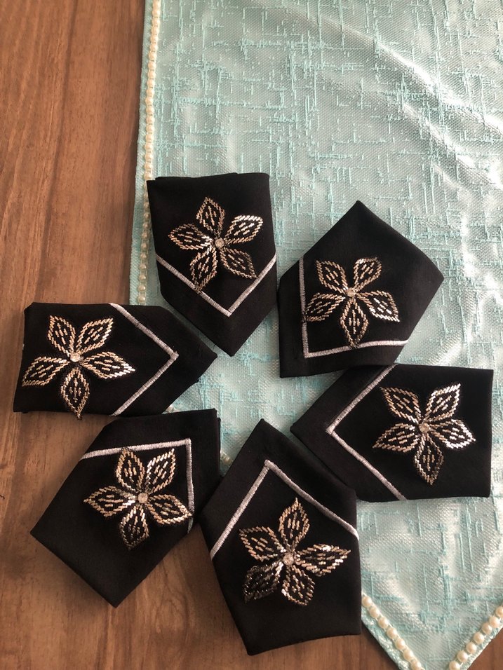 Tel kırma Nakış İşlemeli Siyah peçete takım