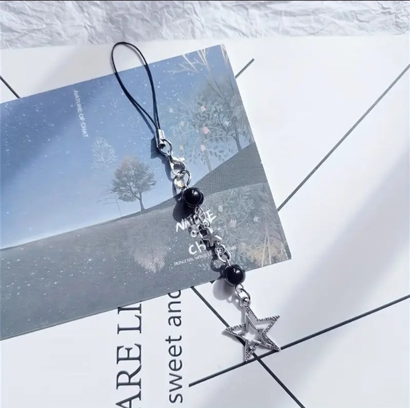 Sıfır, paketli ürün. Siyah boncuk detaylı, yıldız telefon aksesuarı. Boy ölçüsü resimlerde mevcut. Telefon kılıfına, kalemlik ya da çantaya takarak kullanabilir, şık bir dokunuş ile farklı bir görünüm oluşturabilirsiniz..