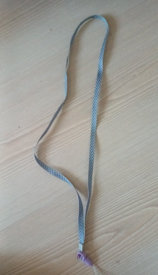 Mavi ve gri renklerde, minimalist desenli erkek ayakkabı bağcığı. Günlük ve karşı kültür tarzına uygun.