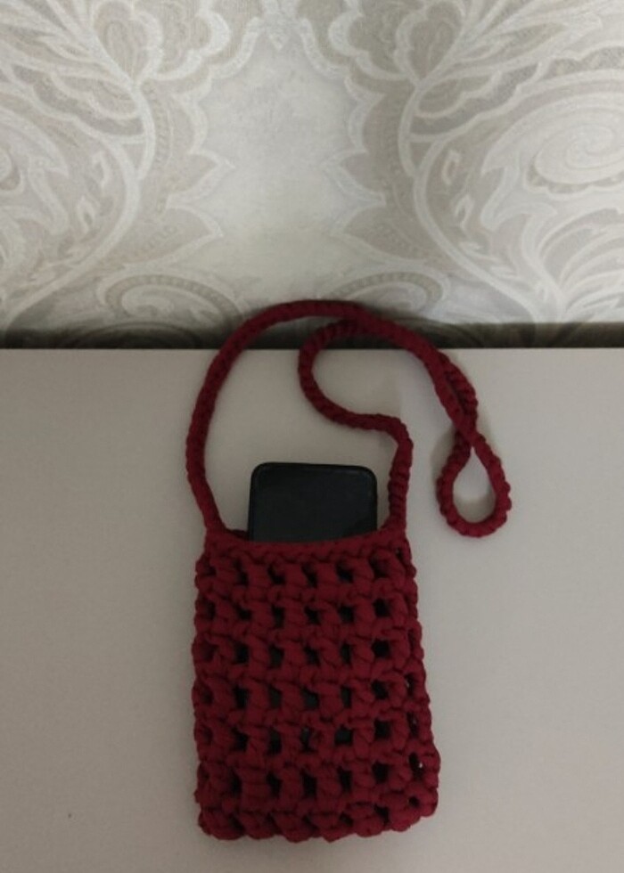 Telefon çantası penye iple örülmüştür kaliteli ve şık
