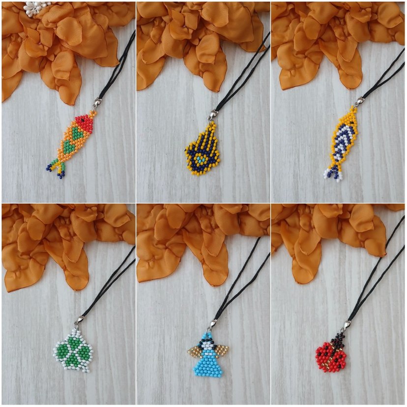 Farklı şekillerde renkli boncuklardan yapılmış, bohem tarzı yansıtan kadın charm. Minimalist ve geleneksel stil ile dikkat çekiyor.