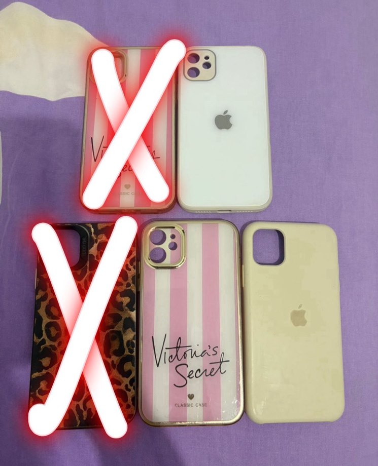 Parlak yüzeye sahip açık pembe telefon kılıfı, counterculture tarzında ve üzerinde 'Victoria's Secret' yazısı bulunur. 'ecne' yazısı görünür.